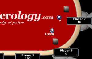 Spilleren har $ 12 i alt og kan tydeligvis ikke matche $ 10.000 – men han kan gå all in. Hvis han gør det, vil spilleren med $ 10.000 tage $ 9.988 tilbage. Der vil ikke være flere sats, da der jo ikke er noget tilbage at satse. Efter floppen vinder spilleren med den bedste hånd $ 25 potten ($ 12 fra hver plus de små persienner $ 1).