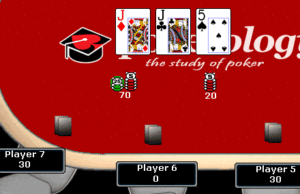 Hovedpotten indeholder nu $ 70, som består af de eksisterende $ 40 i potten, plus $ 10 x 3. Spiller 6 er “all in” og kan kun vinde denne hovedpotte. Der oprettes en sidepotte, der indeholder de ekstra $ 20, og kan kun vindes af de spillere, der har bidraget til denne sidepotte (spillere 5 og 7). Det næste kort vil blive uddelt, og yderligere sats kan finde sted. Eventuelle yderligere indsatser føjes til denne sidepotte, og ikke til hovedpotten. Spillere 5 og 7, som har bidraget til sidepotten, kan vinde sidepotten og hovedpotten, hvis deres hånd slår “all in” -spilleren. Hvis spiller 6 har den vindende hånd efter den sidste indsatsrunde, vinder han $ 70-potten, men sidepotten vindes af enten spiller 5 eller spiller 7.